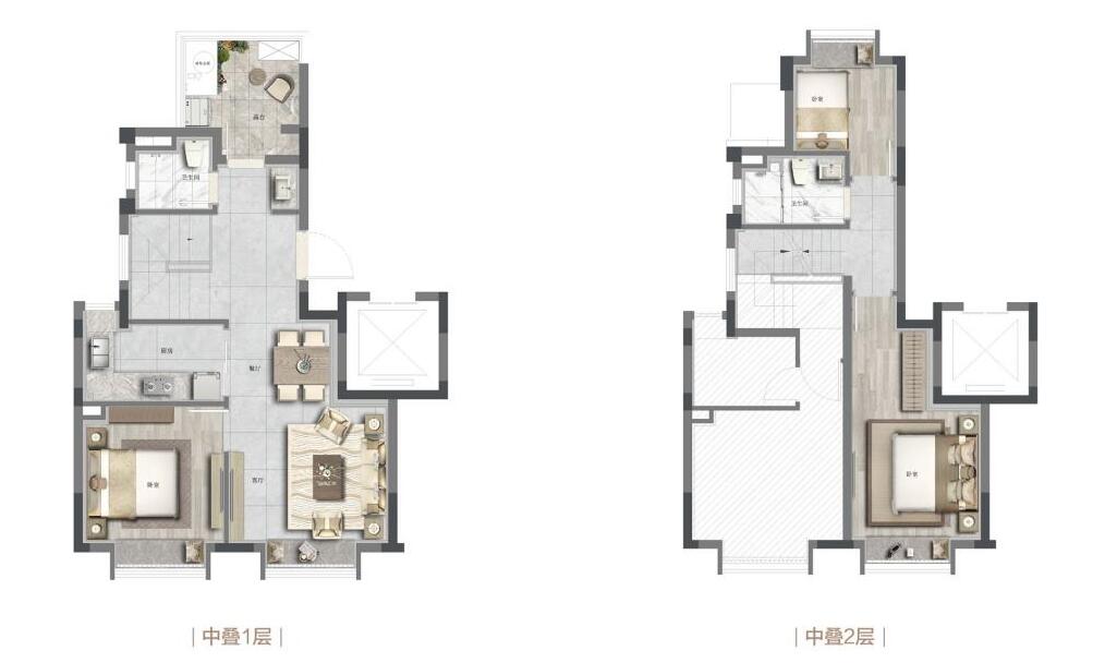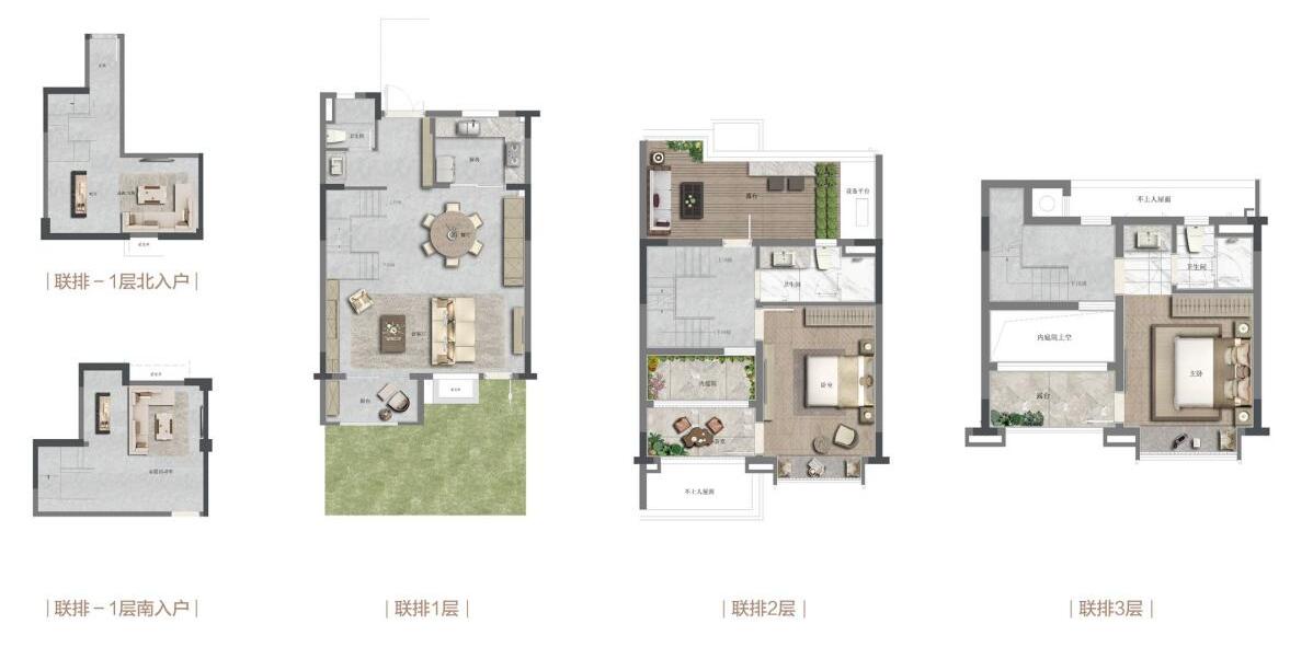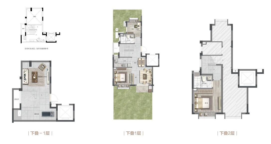 下疊共分3層,其中地上2層,地下1層,首層是全家人的生活主場,為家庭營造交流空間;私享的南北雙花園,儲物向北,生活向南,日常蒔花弄草,隔三差五好友小聚,讓生活的多幕劇隨時上演。