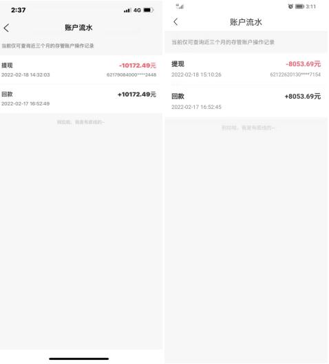玖富出借人最近在網上發布的銀行回款流水里,回款金額已經告別了此前的幾塊、十幾塊、幾十塊的煎熬期,大幾千乃至上萬塊錢的款項匯入讓人倍感振奮。若按這樣的節奏一直回下去,中小額用戶很快就能看到勝利的曙光了。