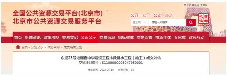 5月31日,北京市公共資源交易服務(wù)平臺發(fā)布了東壩23號地配套中學(xué)電力工程—分界室及外電源工程成交公告和東壩23號地配套中學(xué)電力工程-分界室及外電源工程監(jiān)理項目成交公告,該公告的頒布標(biāo)志著北京中學(xué)的建設(shè)進(jìn)入了實質(zhì)性的建設(shè)階段,預(yù)計2023竣工,建成后可提供1530個學(xué)位,將有效緩解東壩地區(qū)中學(xué)學(xué)位緊張問題,提升整個片區(qū)教育品質(zhì)。