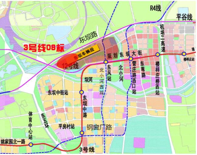 北京地鐵東壩車輛段為3號線、12號線共址車輛段,是目前我國規(guī)模最大的車輛段工程。北京地鐵3號線08標(biāo)建設(shè)用地面積13.4公頃,總建筑面積26萬多平方米,包含運用庫、組合車庫、小汽車庫、門衛(wèi)等多個單體工程。建成后這里將成為3號線、12號線地鐵的“停車場”和“列車醫(yī)院”。