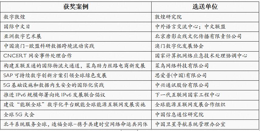 現場,12個精品案例從全球100多個國家和地區、200多個參評案例中脫穎而出,它們作為國際影響力大、社會價值突出的國際代表性項目,分別來自敦煌研究院、中國信通院、中國衛星導航系統管理辦公室、菜鳥物流、全球能源互聯網發展合作組織等12家單位和機構。入選的案例包括“數字敦煌”“國際中文日”“國際物流大通道”“IPv6”“北斗系統”“能聯全球”等,涉及數字藝術、文化交流、網絡安全、數智物流、綠色發展等多個互聯網發展關鍵領域。