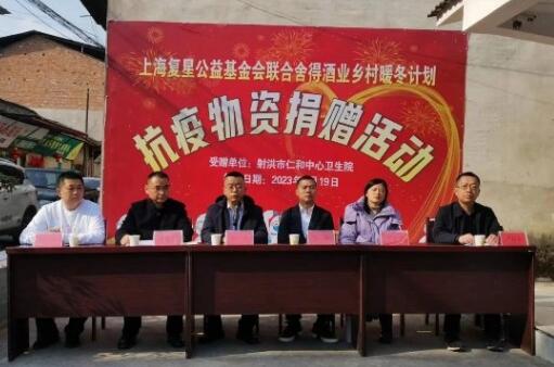 1月19日,舍得酒業聯合上海復星公益基金會(下稱“復星基金會”)“鄉村暖冬計劃”抗疫物資捐贈儀式于射洪市仁和中心衛生院舉行。射洪市獲贈1000瓶阿茲夫定及價值30萬包含血氧儀、制氧機、N95口罩、抗原檢測試劑盒等防疫物資的愛心包,助力鄉村疫情防控。射洪市人民政府副市長于開,市衛健局、仁和鎮相關負責人以及舍得酒業副總裁羅超、工會主席李華萍等出席捐贈儀式。