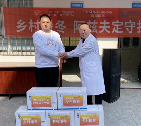 捐贈活動現場,復星員工志愿者將阿茲夫定及防疫愛心包轉交給市衛健局工作人員并分發至各村醫務人員手中。受贈鄉村醫生代表表示,當前正值返鄉高峰期,收到阿茲夫定及防疫物資,對于保障鄉村老年人健康、提升鄉村醫療服務水平可謂是一場及時雨。