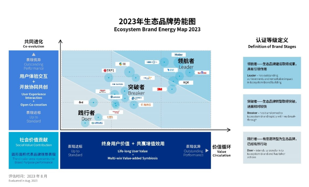 8月29日,2023(第二屆)生態(tài)品牌大會(huì)在北京舉行。本屆大會(huì)以“生態(tài)品牌引領(lǐng)高質(zhì)量發(fā)展”為主題,由新華社品牌工作辦公室、新華出版社、中華人民共和國(guó)年鑒社、中國(guó)社會(huì)科學(xué)院財(cái)經(jīng)戰(zhàn)略研究院、凱度集團(tuán)、《財(cái)經(jīng)》雜志、牛津大學(xué)賽德商學(xué)院等機(jī)構(gòu)聯(lián)合主辦,發(fā)布了“2023年生態(tài)品牌勢(shì)能圖”,今年共有18個(gè)標(biāo)桿品牌獲得生態(tài)品牌認(rèn)證。其中,海爾處于勢(shì)能圖的最高象限,再次獲評(píng)生態(tài)品牌“領(lǐng)航者”。大會(huì)同期舉行了《生態(tài)品牌發(fā)展報(bào)告(2023)》新書首發(fā)儀式。