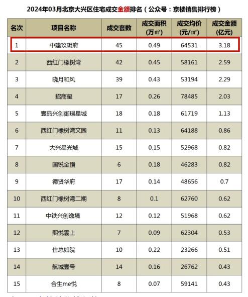 匠心鑄就行業標桿,品質人居獲市場追捧。玖玥府項目自面世以來,一直以超高人氣引發全城關注,開盤當天熱銷31.2億元。3月,項目以45套網簽套數,3.18億元成交金額登頂大興區成交套、面、金額三榜首。同時,根據第一季度統計,玖玥府穩居大興區成交No1,再次見證“玖”系產品市場認可力。