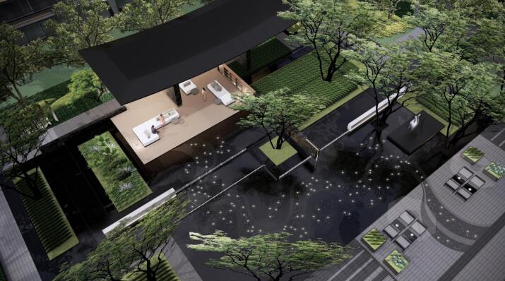 在會所的庭院打造上,玥界會所獨具匠心,打破傳統的平面布局,營造了一個高品質的下沉庭院,這個設計帶來的有層次感的立體景觀、多種功能疊加的空間體驗,都是普通會所無法比擬的。