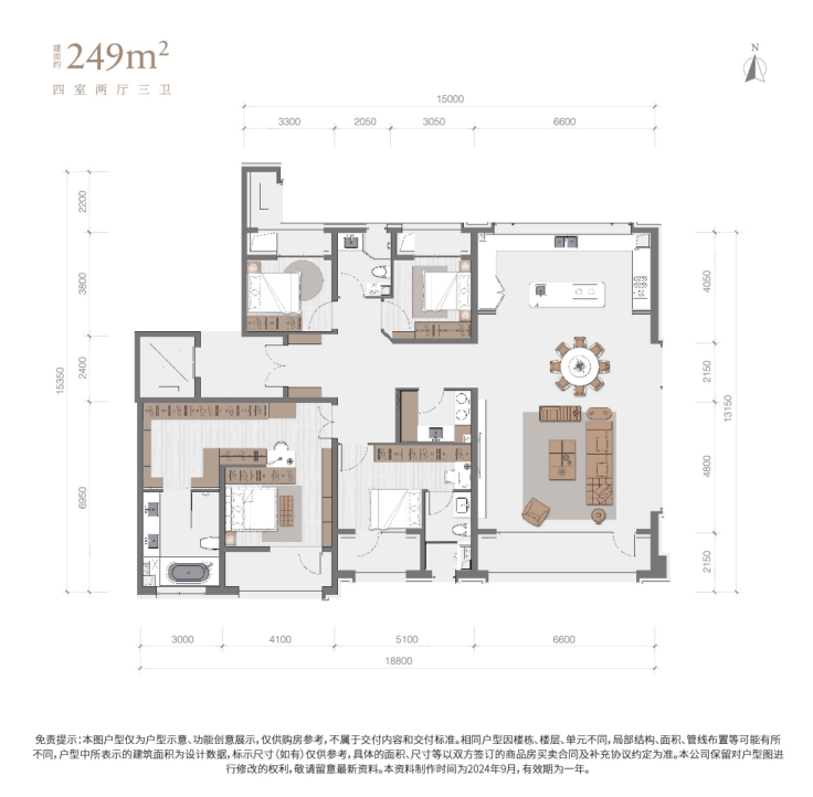 戶型設(shè)計(jì)上,打造建面約143-249㎡精妝大平層,創(chuàng)新戶型的格局,最大約7米通高整板玻璃水晶大堂,凸顯歸家的禮序;無界社交廳,俯瞰東四環(huán)的繁華,感受山水園林的自然詩(shī)意;全面屏落地窗,拓展觀景視野,窗外的風(fēng)景盡收眼底。整體使用率比市場(chǎng)平均水平提升了5%至10%。以249㎡的大戶型為例,配置獨(dú)立的電梯廳與儀式感十足的十字圓廳玄關(guān),設(shè)計(jì)約3.6米層高及約6.6米的奢闊客廳,實(shí)現(xiàn)空間體系的升級(jí)。